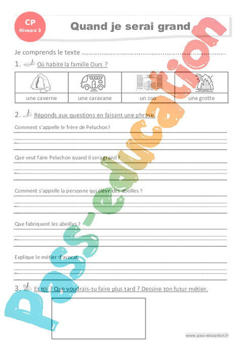 Questionnaire Quand je serai grand – CP – Luminéo – Niveau 3 pdf