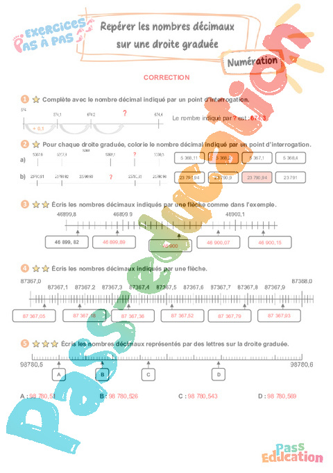 Correction Repérer les nombres décimaux sur une droite graduée – CM2 – Exercices Pas à Pas pdf