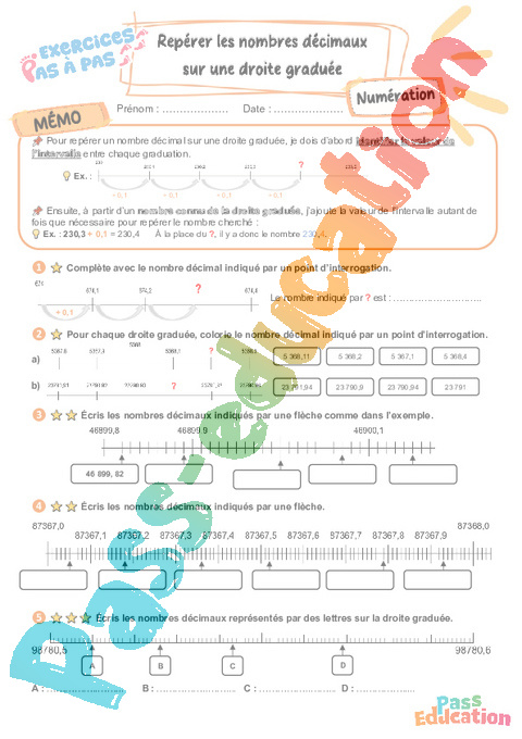 Repérer les nombres décimaux sur une droite graduée – CM2 – Exercices Pas à Pas rtf