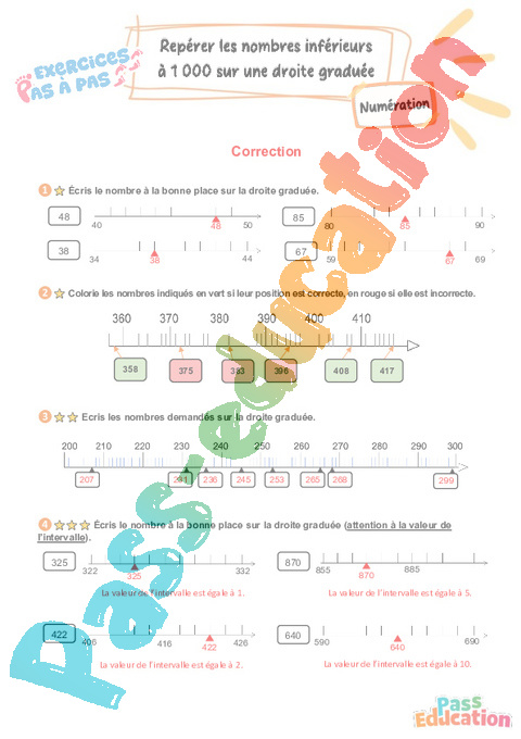 Correction Repérer les nombres inférieurs à 1 000 sur une droite graduée – CE2 – Exercices Pas à Pas pdf