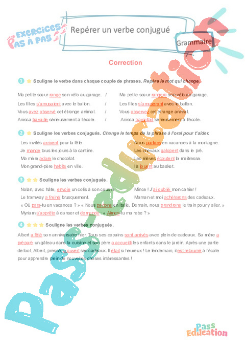 Correction Repérer un verbe conjugué – CE2 – Mémo + Exercices Pas à Pas pdf