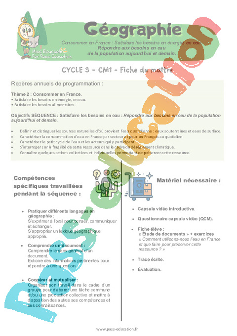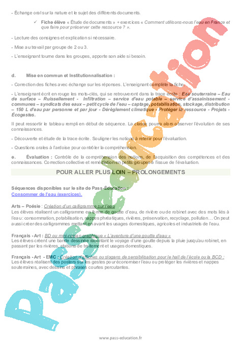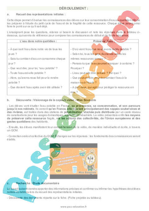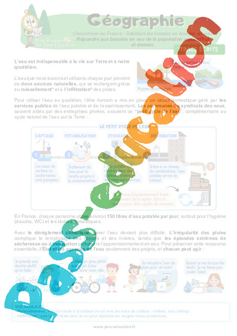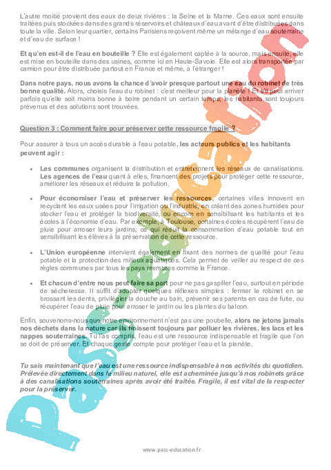 1 Fiche de préparation Répondre aux besoins en eau de la population aujourd’hui et demain – Cm1 pdf