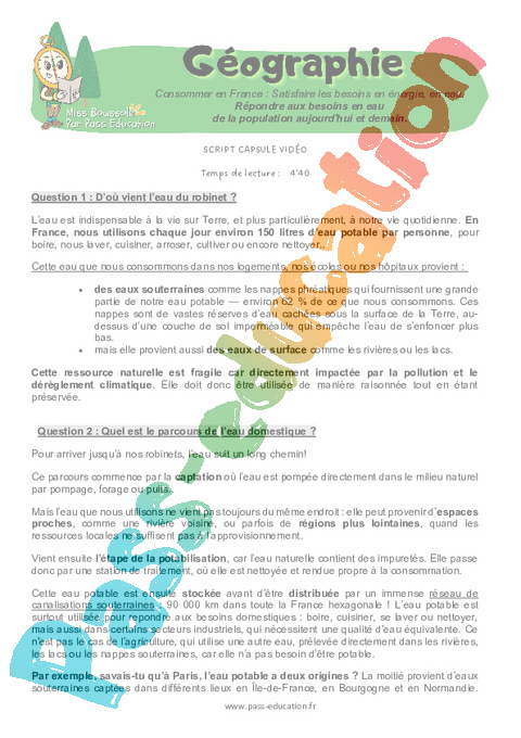 2 Script Répondre aux besoins en eau de la population aujourd’hui et demain – Cm1 pdf