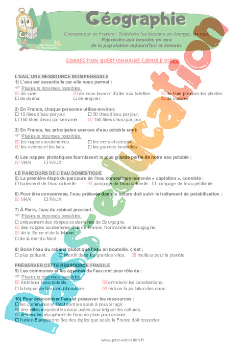 3.1 Correction QCM Répondre aux besoins en eau de la population aujourd’hui et demain – Cm1 pdf
