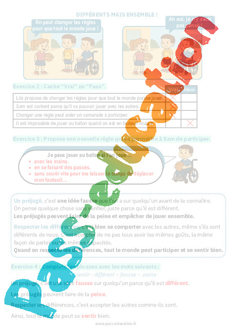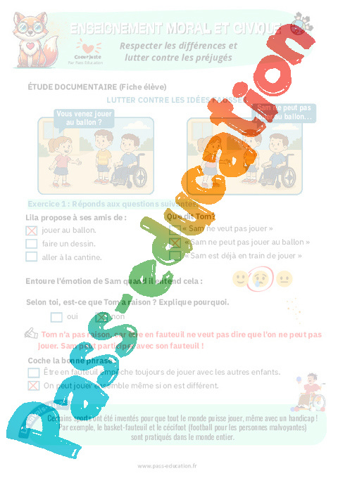 4. Correction Fiche élève Respecter les différences et lutter contre les préjugés – Ce1 pdf