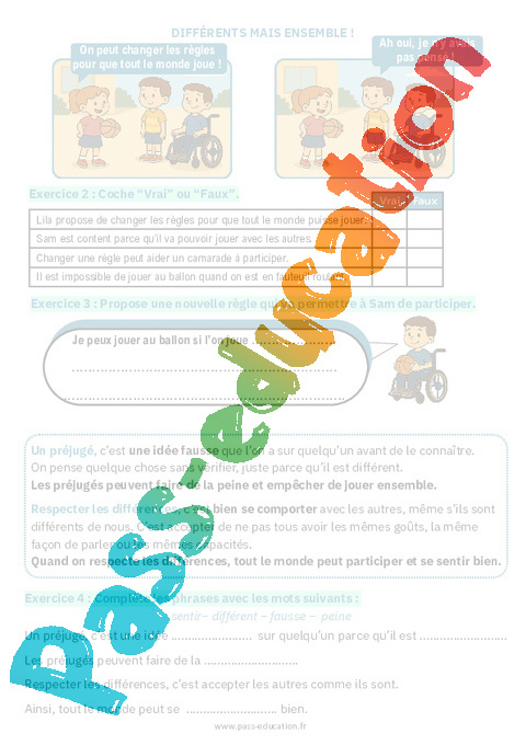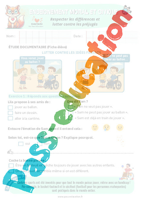 4. Fiche élève Respecter les différences et lutter contre les préjugés – Ce1 pdf