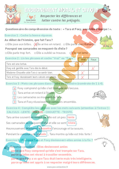 3. Correction Compréhension histoire Respecter les différences et lutter contre les préjugés – Ce1 pdf