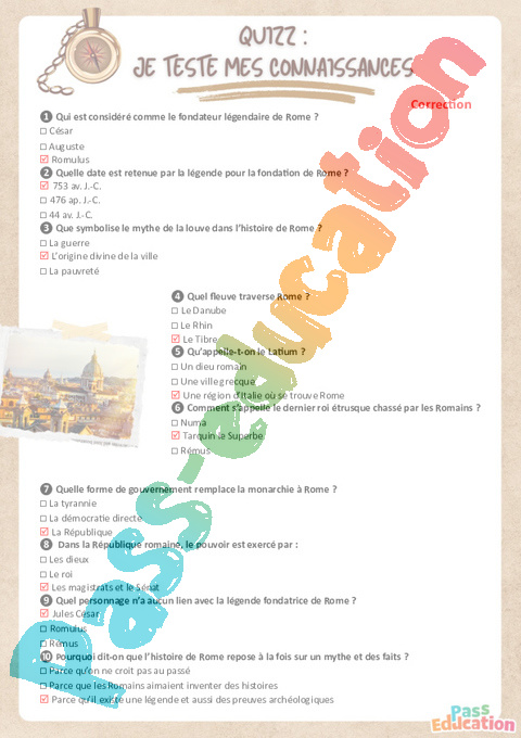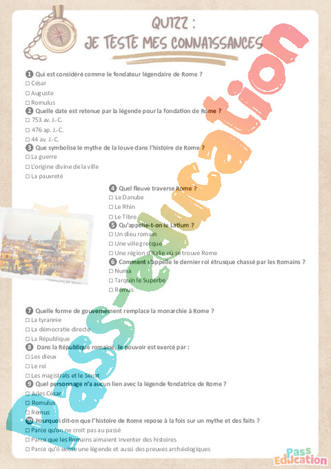 QCM Rome du mythe à l’histoire – 6ème rtf