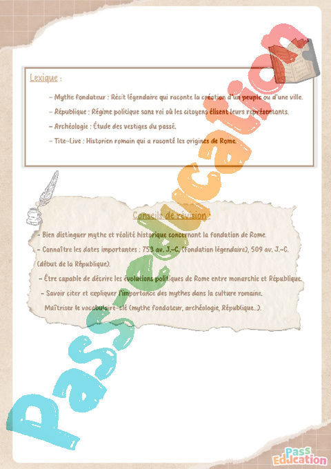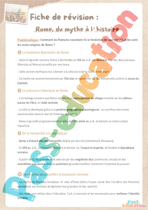 Fiche de révision Rome du mythe à l’histoire – 6ème pdf