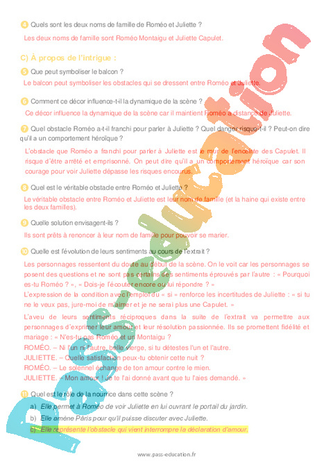 Correction Questionnaire – 4ème Roméo et Juliette (William Shakespeare) pdf