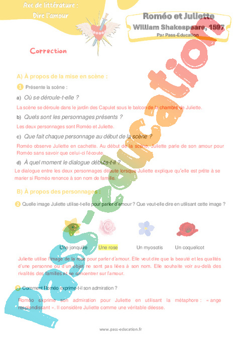 Correction Questionnaire – 4ème Roméo et Juliette (William Shakespeare) rtf