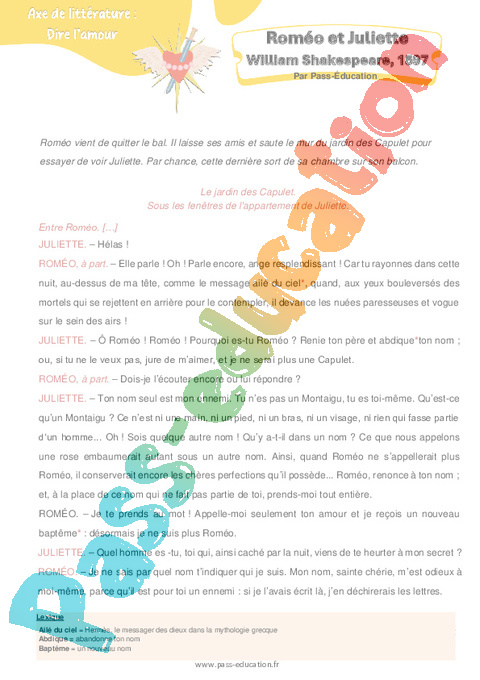 Littérature – 4ème Roméo et Juliette (William Shakespeare) pdf