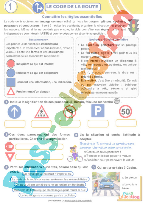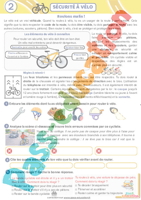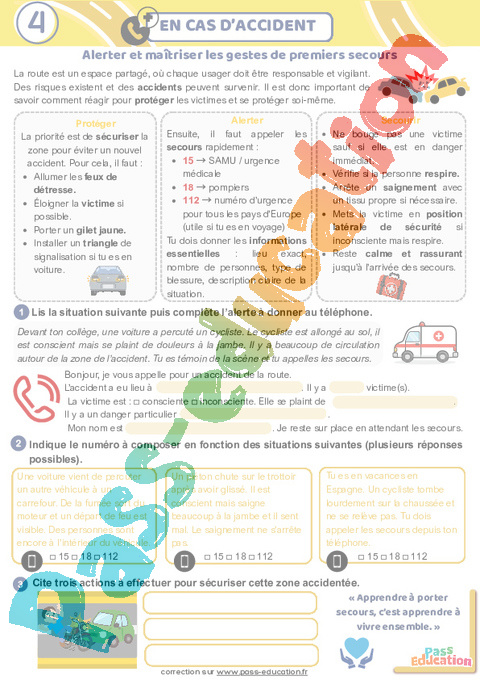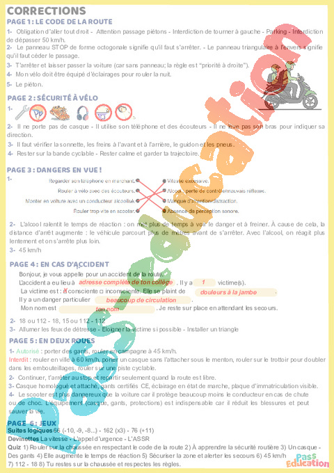 Correction Sécurité routière – Cahier de vacances – 5ème – 4ème – 3ème pdf