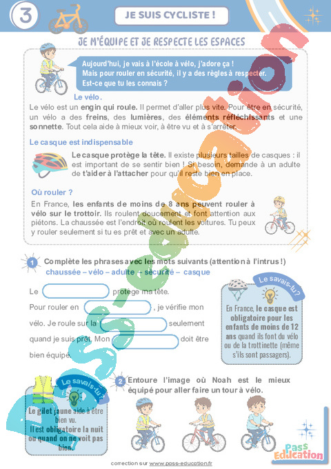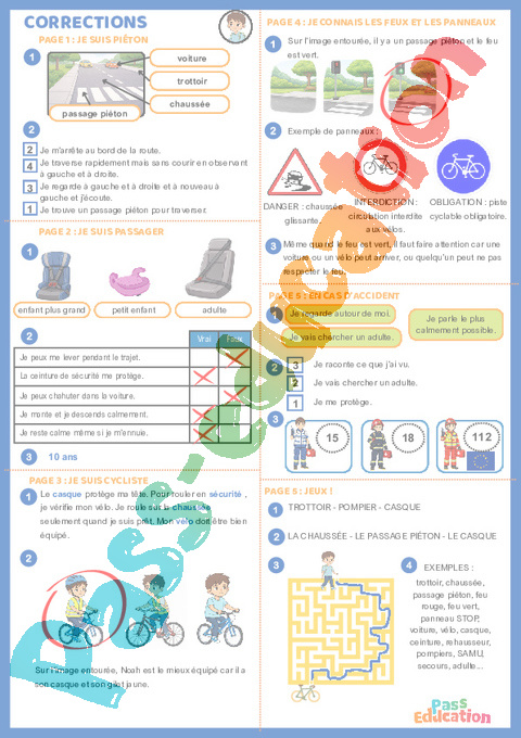 Correction Sécurité routière – Cahier de vacances – CE1 – CE2 pdf
