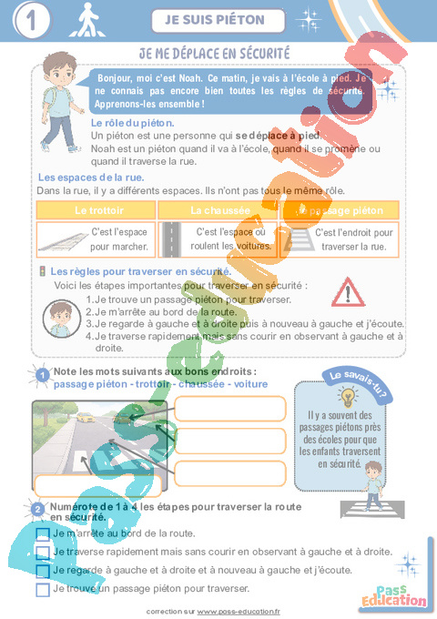 Bonjour, moi c’est Noah. Ce matin, je vais à l’école à pied. Je ne connais pas encore bien toutes les règles de sécurité. Apprenons-les ensemble !