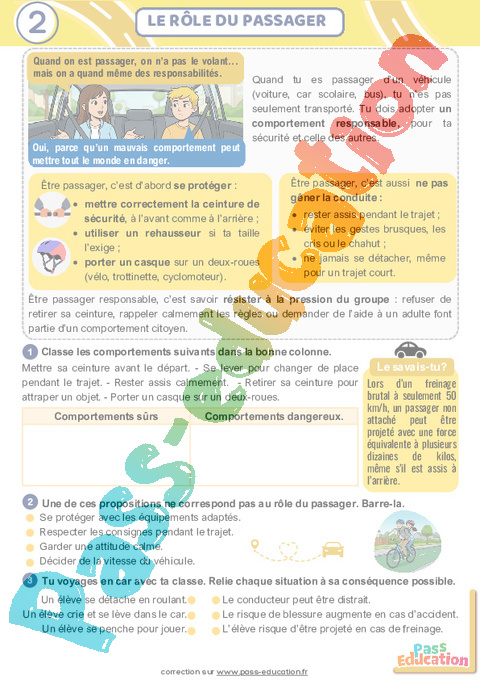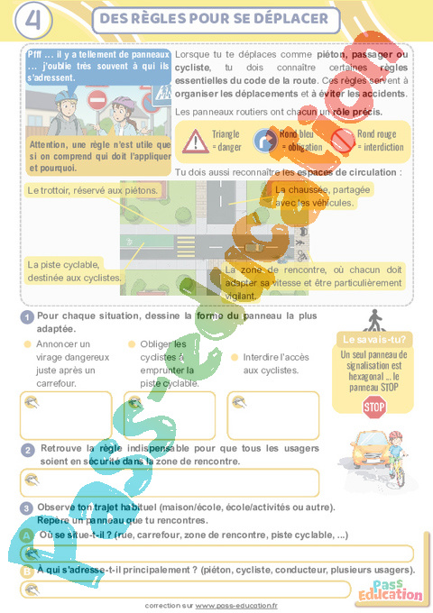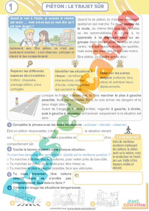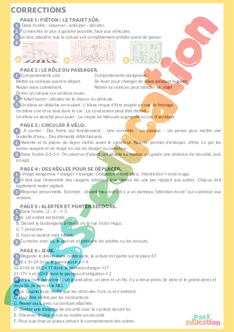Correction Sécurité routière – Cahier de vacances – CM1 – CM2 – 6ème pdf