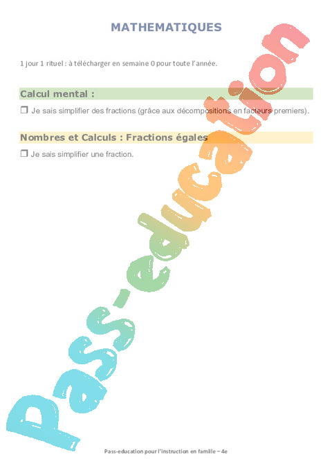 1 a Nombres et calculs- Fractions égales Semaine 11 IEF 4ème pdf