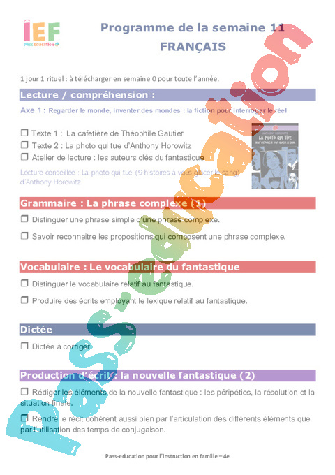 0 programme semaine 11 Semaine 11 IEF 4ème pdf