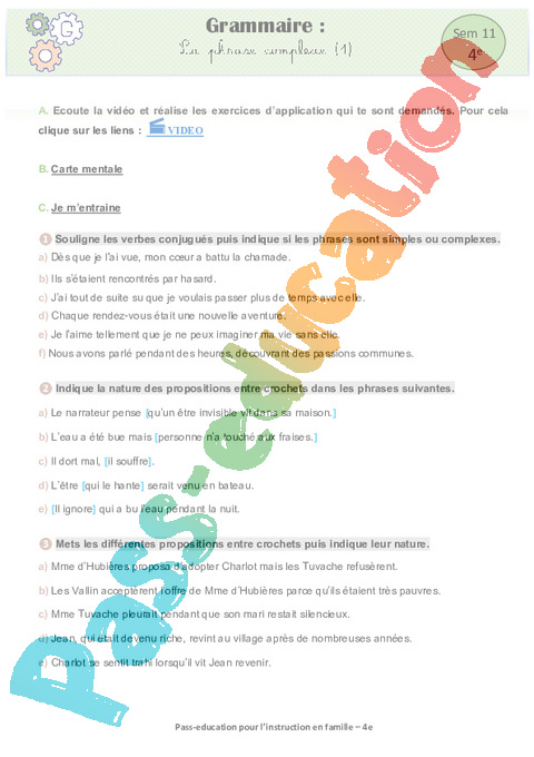 5 a- Grammaire- La phrase complexe (1) Semaine 11 IEF 4ème pdf