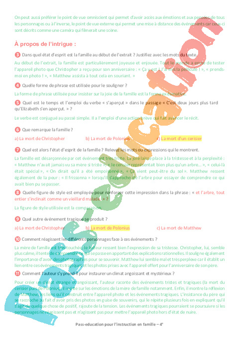 2b Questionnaire La photo qui tue – HOROWITZ Semaine 11 IEF 4ème pdf