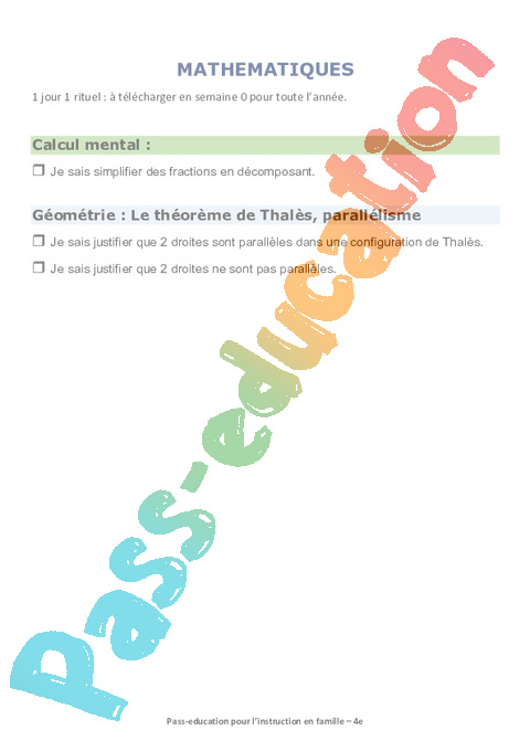 1b- Carte mentale – Le théorème de Thalès et parallélisme Semaine 13 IEF 4ème pdf