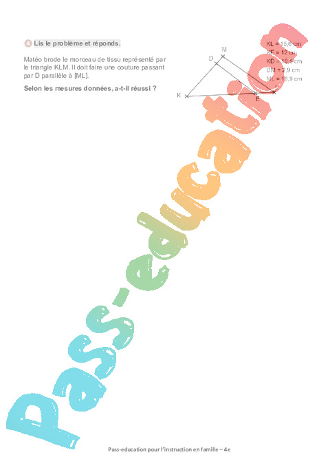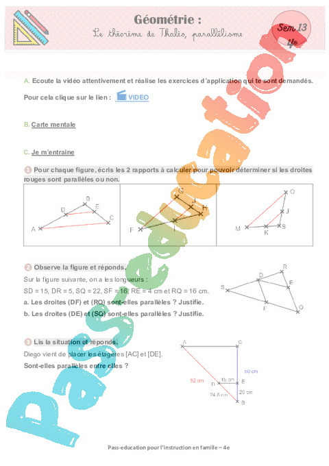 1 a Géométrie – Le théorème de Thalès et parallélisme Semaine 13 IEF 4ème pdf