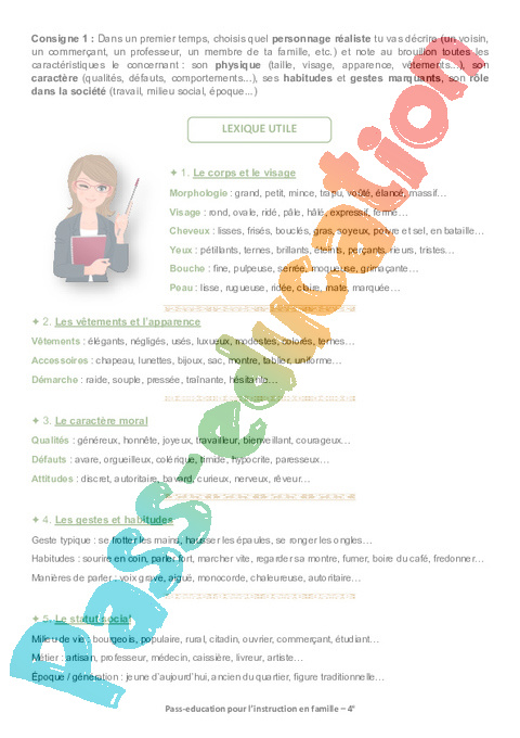 Production d’écrit : texte descriptif, le portrait réaliste (1)
