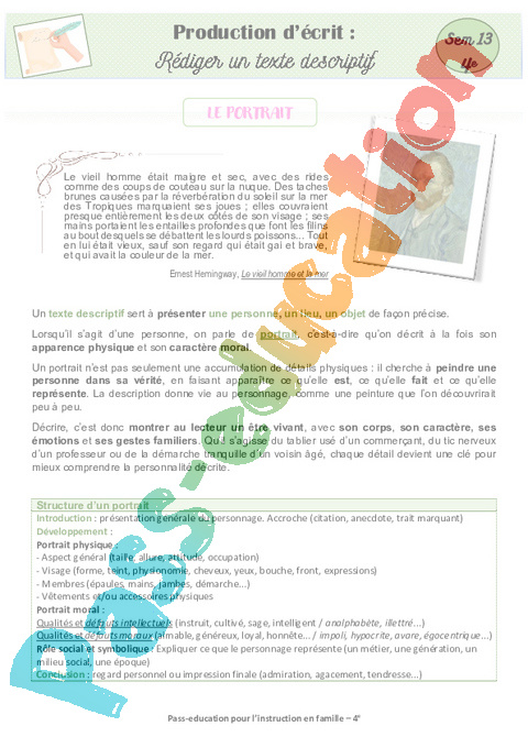 4 Expression écriture texte descriptif portrait Semaine 13 IEF 4ème pdf