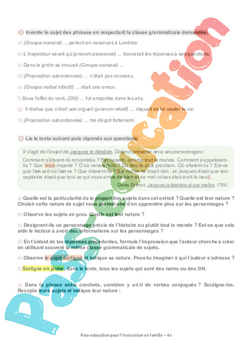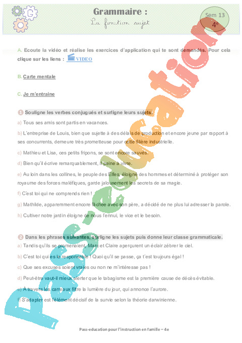 5 a- Grammaire – La fonction sujet Semaine 13 IEF 4ème pdf