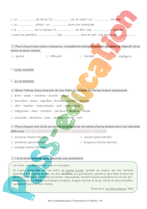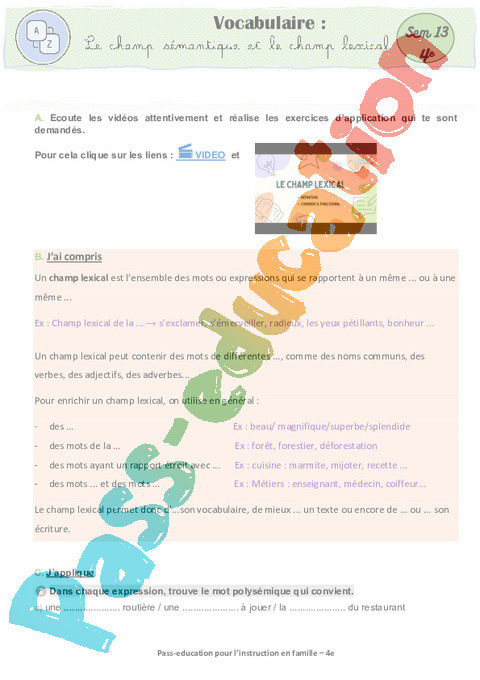 6 a Vocabulaire- Le champ sémantique et le champ lexical Semaine 13 IEF 4ème pdf