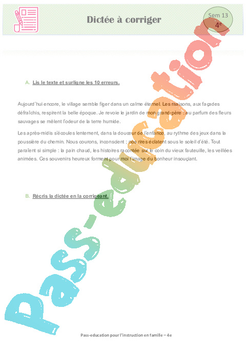 7 Dictée à corriger Semaine 13 IEF 4ème pdf
