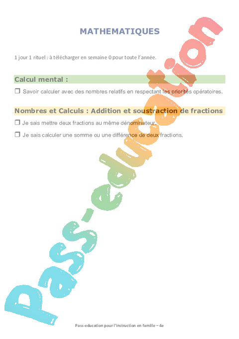 1 a Nombres et calculs- Addition et soustraction de fractions Semaine 9 IEF 4ème pdf