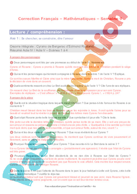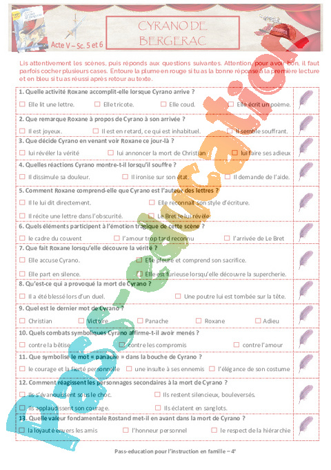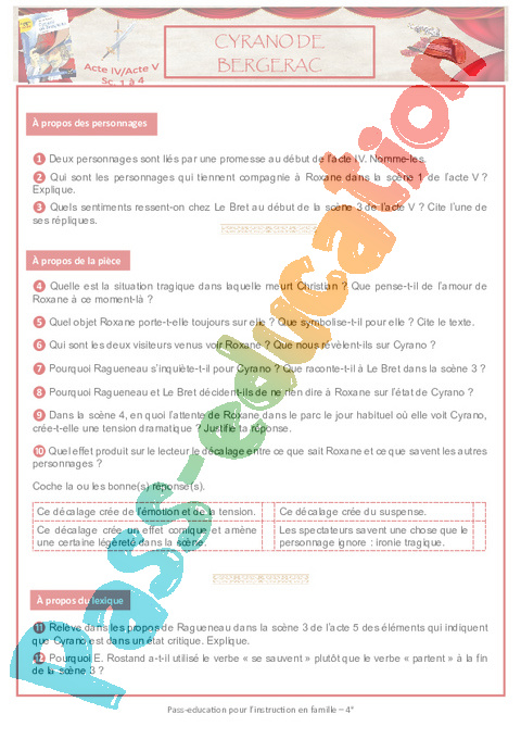 1 Questionnaire Cyrano Act IV Act V Sc 1 2 3 4 Semaine 9 IEF 4ème pdf
