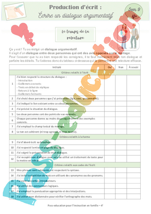 4 Expression écrite dialogue argumentatif relecture Semaine 9 IEF 4ème pdf