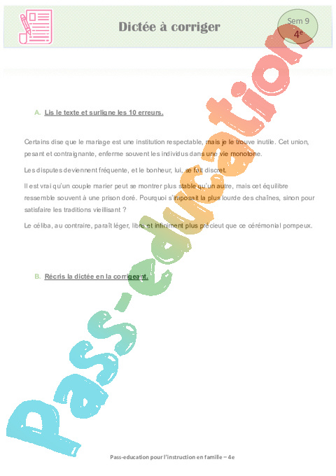 7 Dictée à corriger Semaine 9 IEF 4ème pdf
