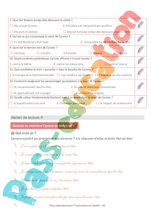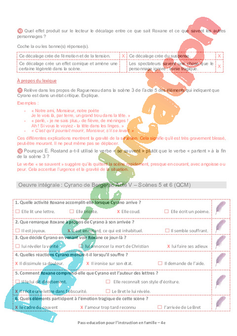 2 QCM Cyrano Acte V Sc 5 6 Semaine 9 IEF 4ème pdf