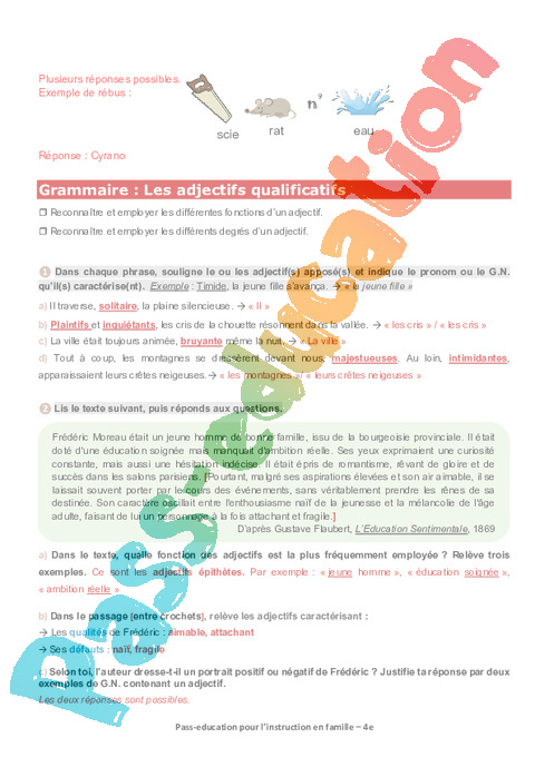 5 a- Grammaire- Les adjectifs qualificatifs Semaine 9 IEF 4ème pdf