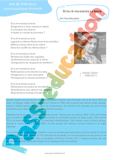 Littérature Si tu ré-inventais la terre (Andrée Chédid) – 3ème pdf