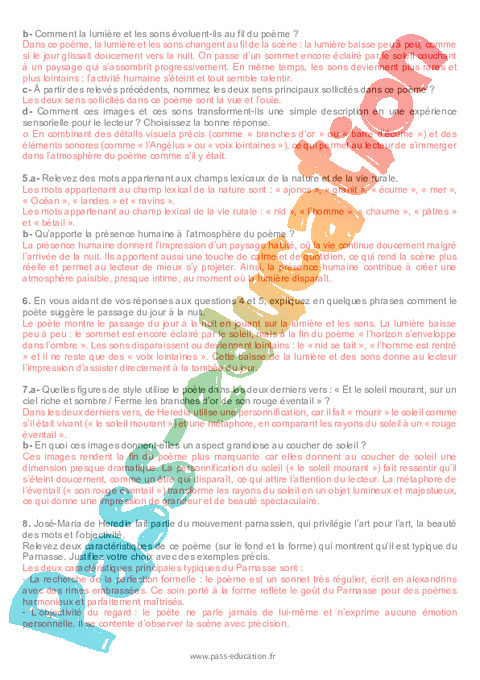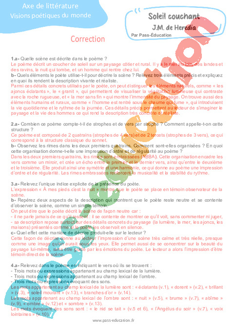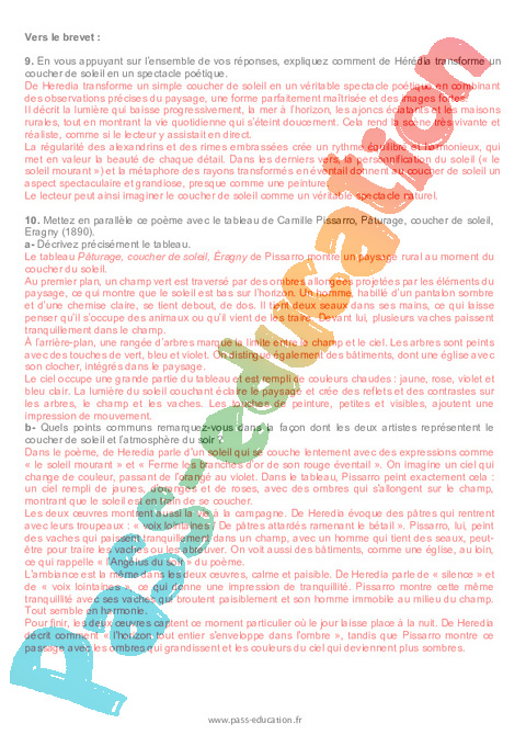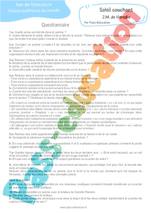 Correction Questionnaire Soleil couchant J. M. de Heredia – 3ème pdf