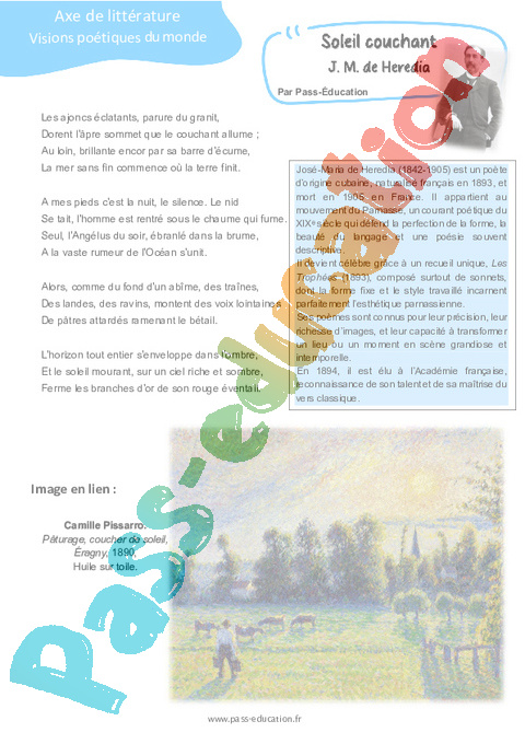 Littérature Soleil couchant J. M. de Heredia – 3ème pdf