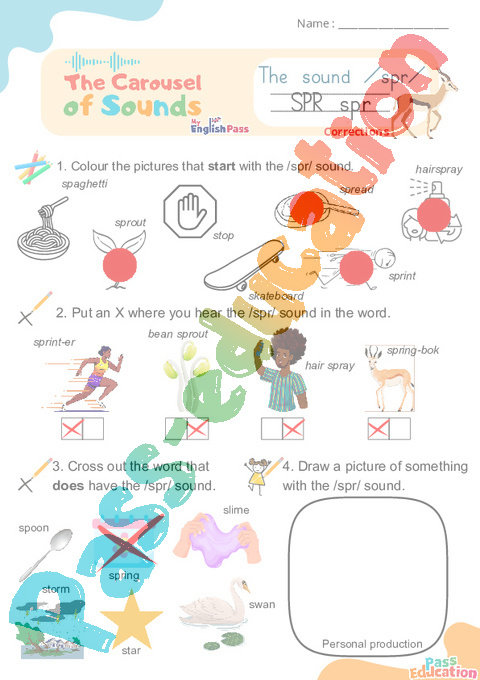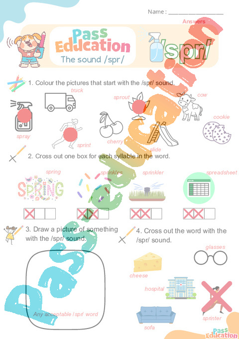 3. Cross out the word that does have the /spr/ sound.