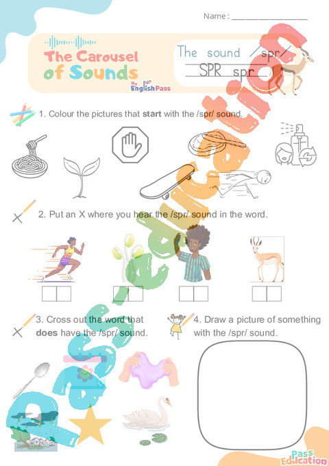 1. Colour the pictures that start with the /spr/ sound.