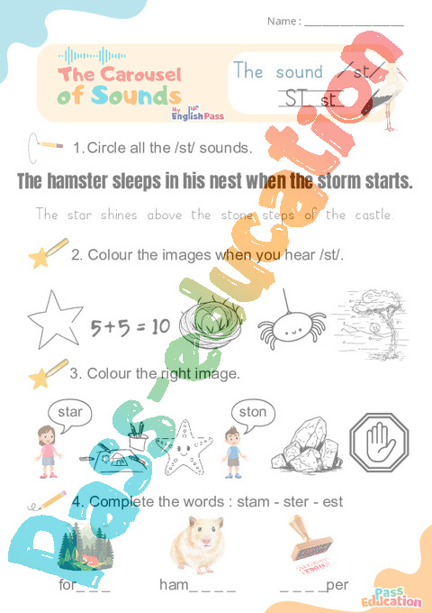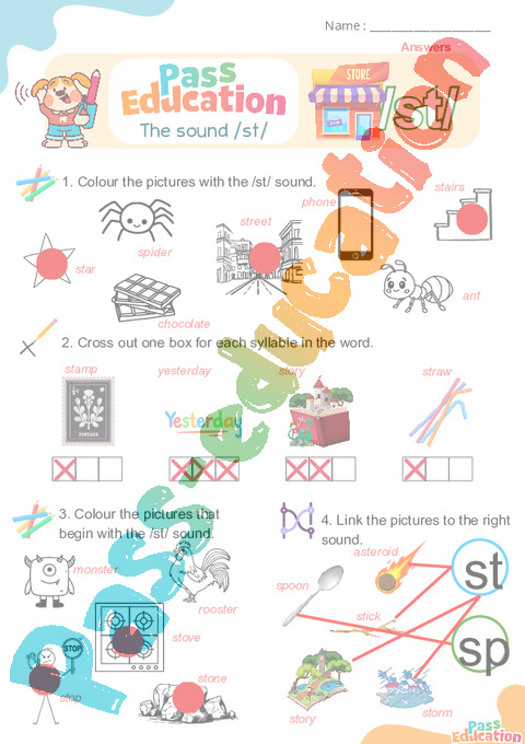 1.Circle all the /st/ sounds.