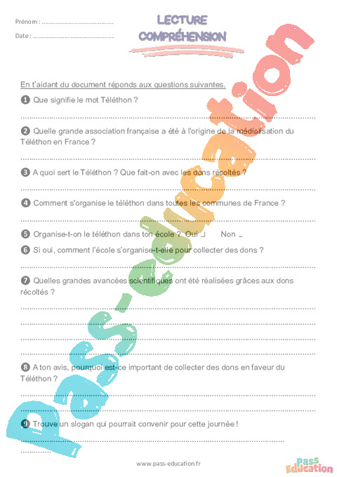 Questionnaire Téléthon – Ce2 – Cm1 – Cm2 pdf