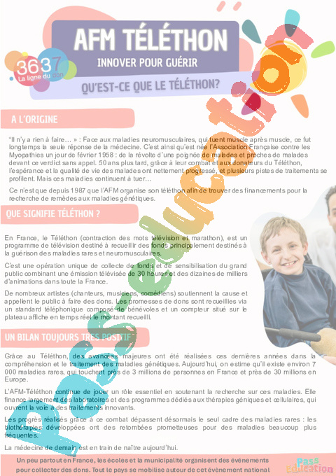 Téléthon – Texte documentaire – Ressources pédagogiques – Ce2 – Cm1 – Cm2 – Cycle 3