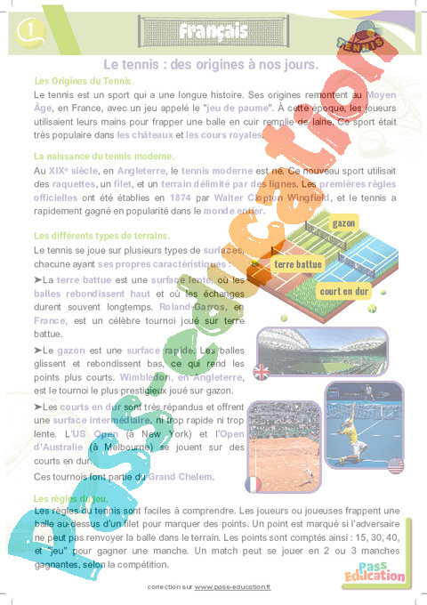 Correction Tennis – Fichier d’activités – CM1 – CM2 pdf