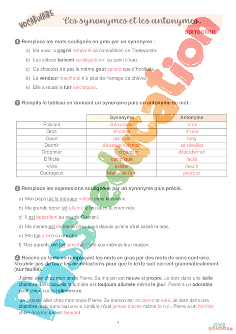 Remplis le tableau en donnant un synonyme puis un antonyme du mot :