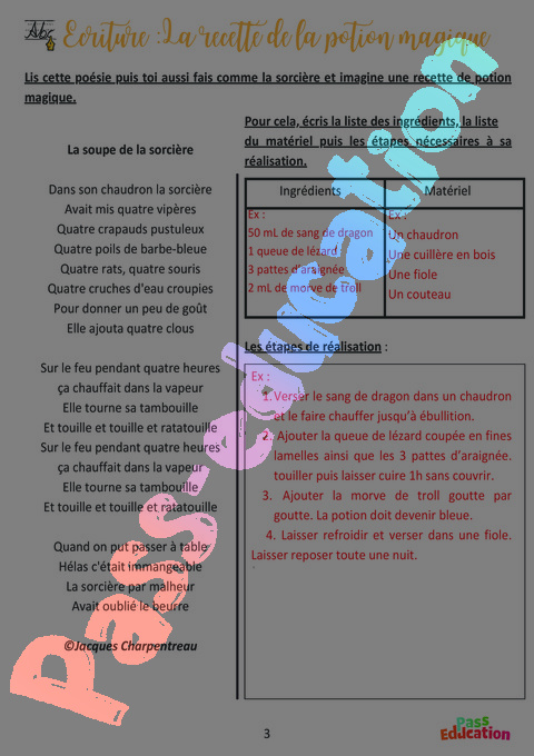 Lis cette poésie puis toi aussi fais comme la sorcière et imagine une recette de potion magique.