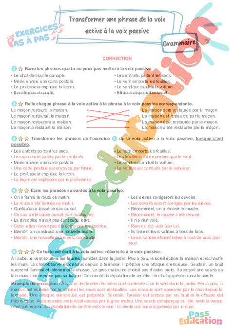 Correction Exercices Transformer une phrase de la voix active à la voix passive – CM2