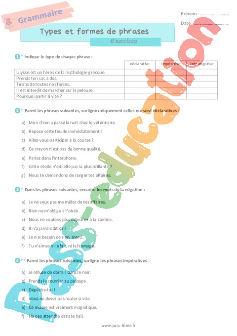 Exercices Types et formes de phrases 6ème pdf